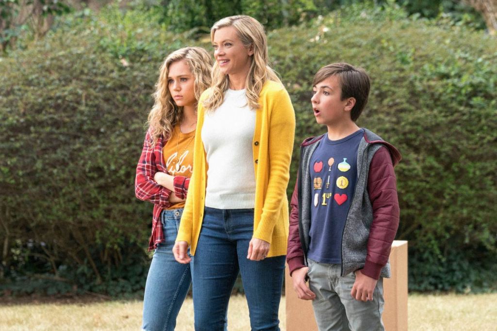 Ten years later, Whitmore, now a sophomore in high school, begrudgingly prepares to move with her family to Blue Valley from California. Her widowed mother Barbara (Amy Smart) is now married to Pat! Dugan and his son Mike (Trae Romano) arrive to pick them up and they journey to their new home. Courtney is less than enthusiastic about the whole situation. She is annoyed by Dugan’s constant attempts to be her “father” and her overbearing younger stepbrother. Her first day at Blue Valley High doesn’t make things better. She finds out there is no gymnastics team, deals with bullies, and is relegated to the “losers” table where she meets Beth (Anjelika Washington), Rick (Cameron Gellman) and Yolanda (Yvette Monreal). When Henry King Jr. (Jake Austin Walker) bullies Yolanda, Courtney stands up for her and picks a fight. She ends up in detention.